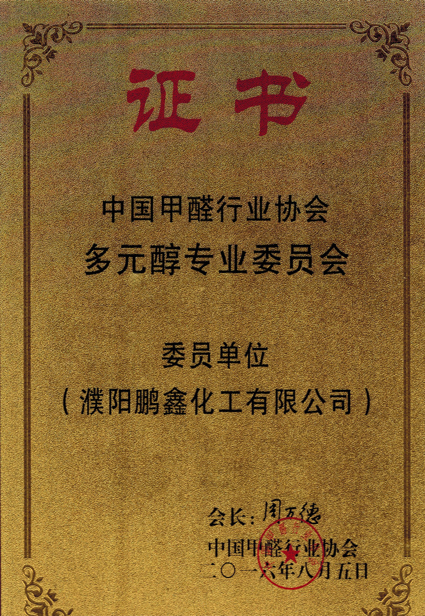 甲醛的下游產品主要有季戊四醇、新戊二醇、三羥甲基丙烷等。為解決甲醛產能過剩,提升和發(fā)展多元醇行業(yè)生產規(guī)模、技術力量,提高行業(yè)發(fā)展的整體水平,我公司和國內主要多元醇生產企業(yè)聯(lián)合申請,在甲醛行業(yè)協(xié)會框架下,于2016年8月成立了多元醇專業(yè)委員會。